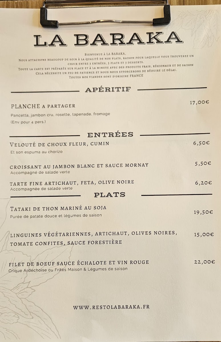 Introducing La Baraka - Restaurant de produits frais & locaux, located along the serene banks of the Rhône in Bourg-Saint-Andeol, offering a delightful culinary experience focused on fresh, local produce. The restaurant’s welcoming ambiance, complete with a shaded terrace, sets the stage for memorable gatherings. Guests can indulge in a broad array of dishes highlighted by homemade brunch selections, featuring freshly baked pastries, crêpes, and vibrant fruit salads.